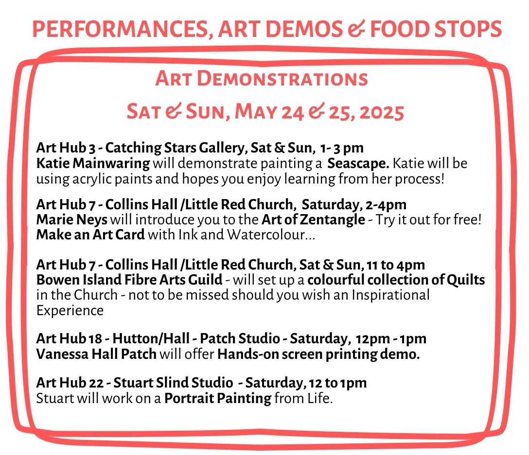 Scheduled Art Demo's Sat & Sun, May 24/25